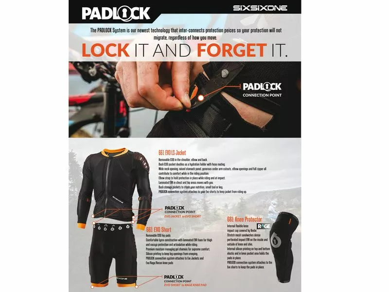 Les coudières SixSixOne Rage ont été en grande partie repensées pour 2016. Loic Bruni en personne a participé au developpement de cette nouvelle cuvée en testant des prototypes durant toute la saison 2015. Le résultat ? Les Rage sont plus légères, plus confortables et bénéficient d’une plus grosse zone de protection. Elles sont également dotées du système Padlock, compatible uniquement avec les protection EVO Compression Jacket manches courtes de la marque, offrant un excellent maintien des coudières. Un allié de choix pour les Enduristes et Descendeurs.