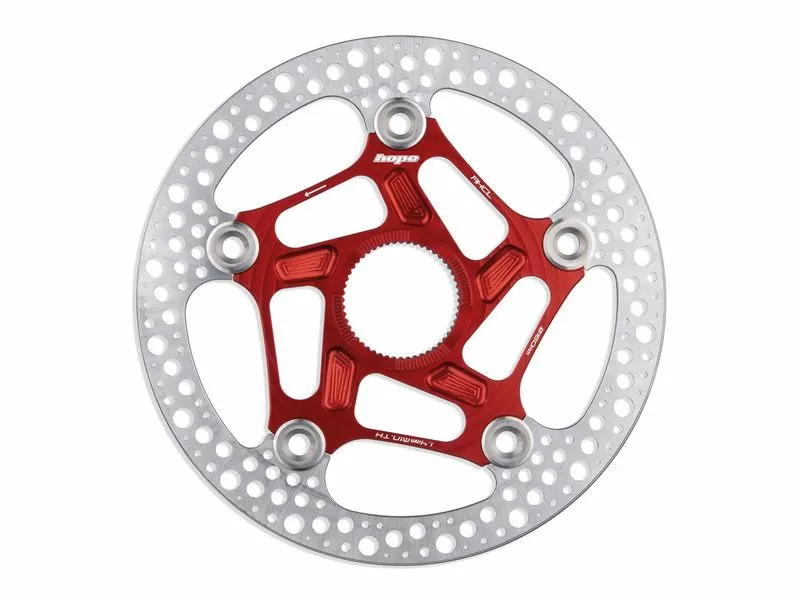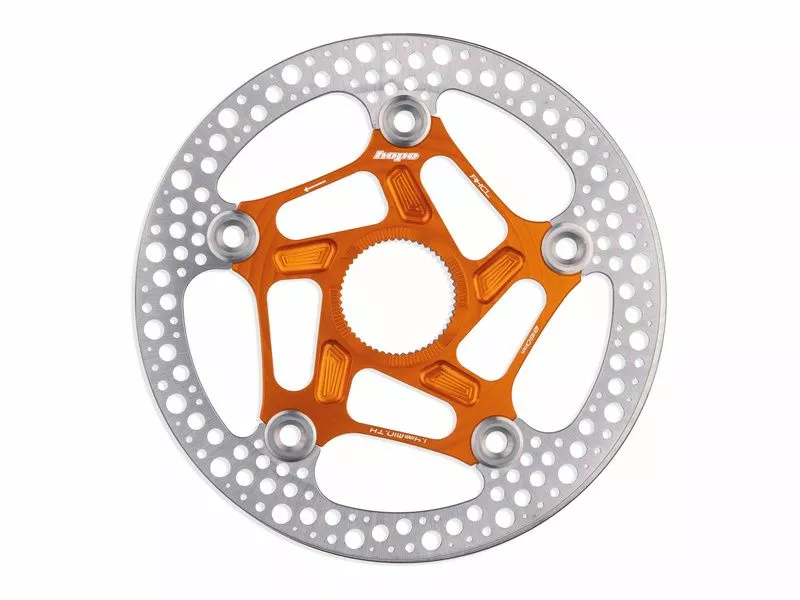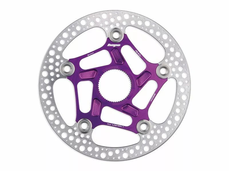 Le disque flottant Hope RX ici dans sa version Centerlock, est doté d’une conception flottante offrant une meilleure dissipation de chaleur. Sa surface de freinage en acier est traitée thermiquement et rivetée sur étoile aluminium et les flancs du disque sont usinés afin de limiter tout risque de coupure. Il est disponible en 6 couleurs (Noir, Rouge, Argent, Bleu, Orange et Violet) et uniquement en diamètre 160 mm.