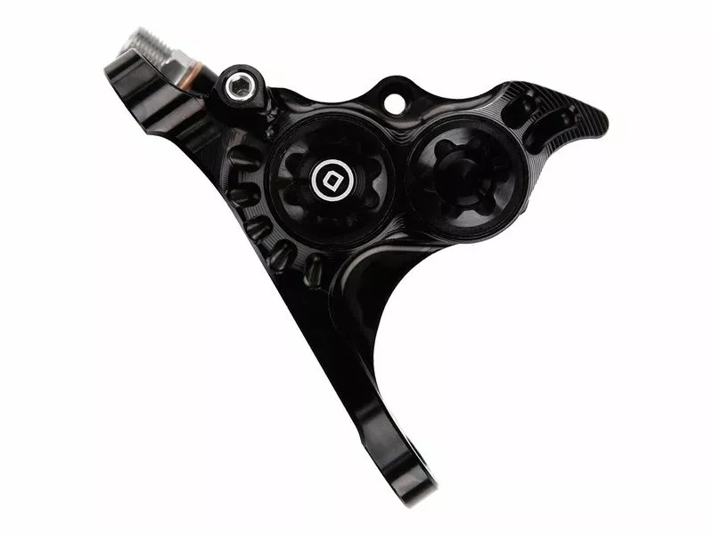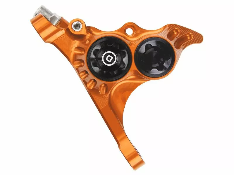 L‘étrier de frein Hope RX4+ est usiné à partir d’un bloc en aluminium 2014 T6 offrant une grande rigidité et un touché de freinage franc. Equipé de 4 pistons en résine phénolique (2 pistons de 14 mm et 2 pistons de 16 mm) ils sont ici développés pour fonctionner avec les freins à disque utilisant de l’huile DOT (Sram). L’étrier RX4+ est disponible en 6 couleurs d’anodisation (Bleu, Orange, Rouge, Noir, Violet, Argent) et est livré avec deux types de plaquettes (Bleues pour un usage route, et Rouges pour un usage Cyclo Cross / Gravel) .