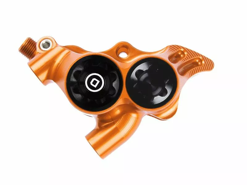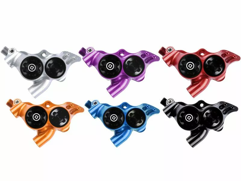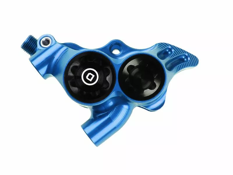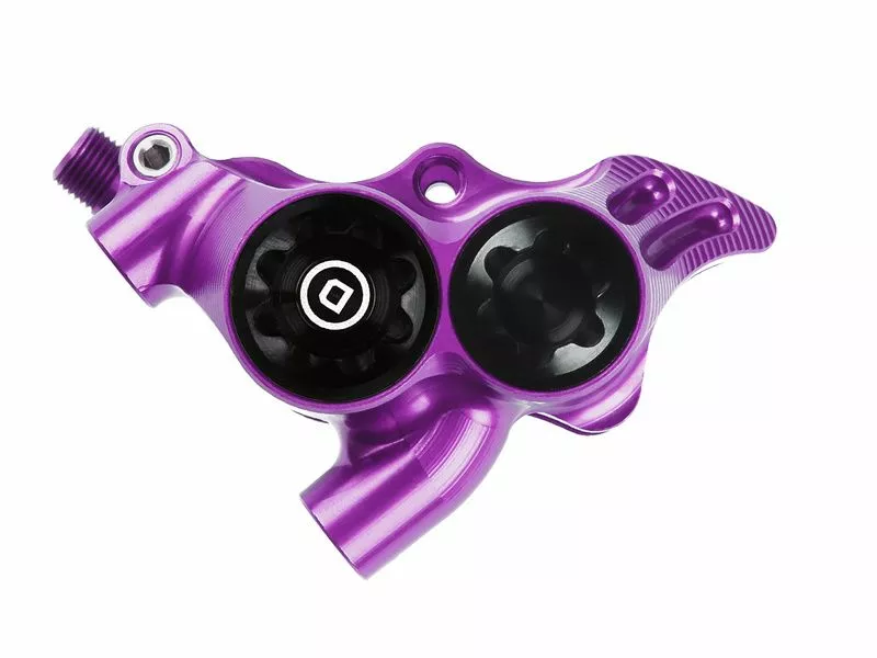 L‘étrier de frein Hope RX4+ est usiné à partir d’un bloc en aluminium 2014 T6 offrant une grande rigidité et un touché de freinage franc. Equipé de 4 pistons en résine phénolique (2 pistons de 14 mm et 2 pistons de 16 mm) ils sont ici développés pour fonctionner avec les freins à disque utilisant de l’huile DOT (Sram). L’étrier RX4+ est disponible en 6 couleurs d’anodisation (Bleu, Orange, Rouge, Noir, Violet, Argent) et est livré avec deux types de plaquettes (Bleues pour un usage route, et Rouges pour un usage Cyclo Cross / Gravel) .