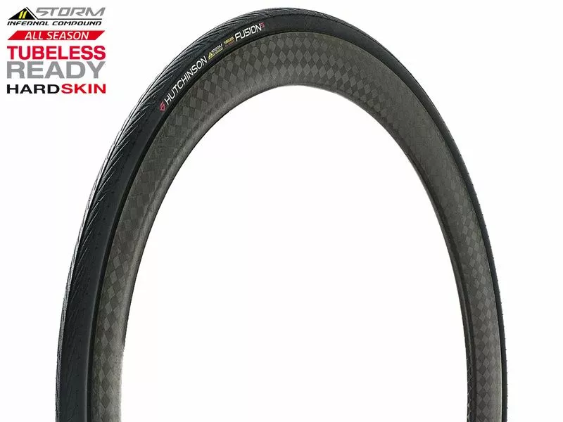 Le pneu Hutchinson Fusion 5 All Season Tubeless Ready Hardskin offre une excellente adhérence par tous les temps grâce à son profil rainuré et à la toute dernière gomme ElevenSTORM. Il n’est certes pas le plus léger mais il offre une longévité exceptionnelle grâce à une épaisseur de gomme spécifique de 1,6 mm et une granulométrie assurant une très bonne adhérence sur routes humides. En plus de ça le renfort Hardskin protège efficacement toute la surface du pneu contre les crevaisons. Avec ce Fusion 5 All Season vous pourrez aisément dépasser les 5000 km et la version 700×28 vous bluffera par sa tendresses et son efficacité.