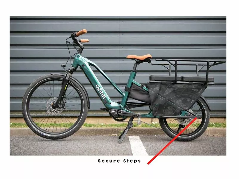 Les repose-pieds O2Feel Secure Steps seront l’accessoires idéales pour le transport de vos enfants. Installés sur le O2feel Cargo, les Secure Steps aideront vos enfants à monter et à descendre du vélo en toute sécurité.