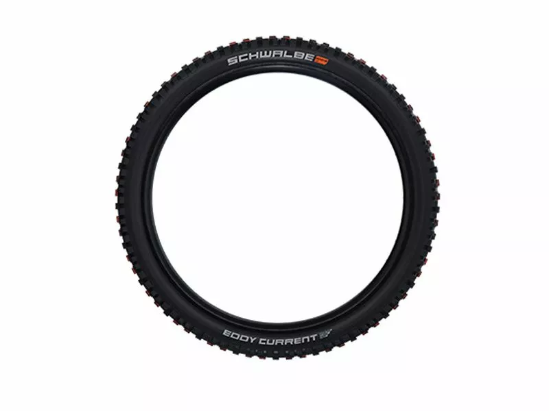 Le Eddy Current avant 29″ est le premier pneu All-Mountain de Schwalbe à être totalement dédié au VTTAE. Ses larges sections, ses crampons massifs et une bonne couche de gomme maximisent les performances, que ce soit en montée ou sur terrain technique. La carcasse Super Trail et la gomme Addix Soft jouent également un rôle extrêment important sur les performances du Eddy Current et permettent de contenir un peu son poids bien qu’il dépasse aisément le kilo.