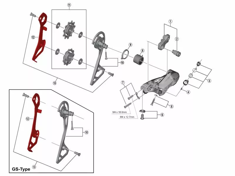 La chape interne Shimano pour dérailleur 11 vitesses Ultegra R8000 est en aluminium et est disponible en courte (SS) ou en moyenne (GS). Elle est livrée sans vis.